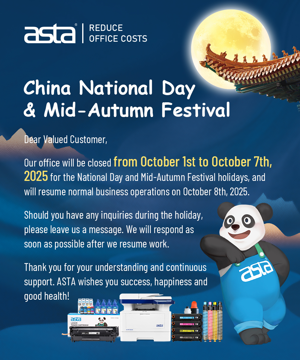 2025-Celebrate China's National Day & Mid-Autumn Festival---ASTA Toner Media Posters 2025-09-28 Prev : Why Always the Same Quality Matters for Your Printing Consumables Brand Next : ✨ One partnership. Endless possibilities. Related Posts 2025-09-30 AS-MFP1022NW – Designed for Business, Built for Speed. ⚡ 2025-09-29 ✨ One partnership. Endless possibilities. 2025-09-26 🎯 Perfect colors. 📊 Perfect yield. 2025-09-25 Your trusted partner for printing success. ASTA delivers quality you can count on.