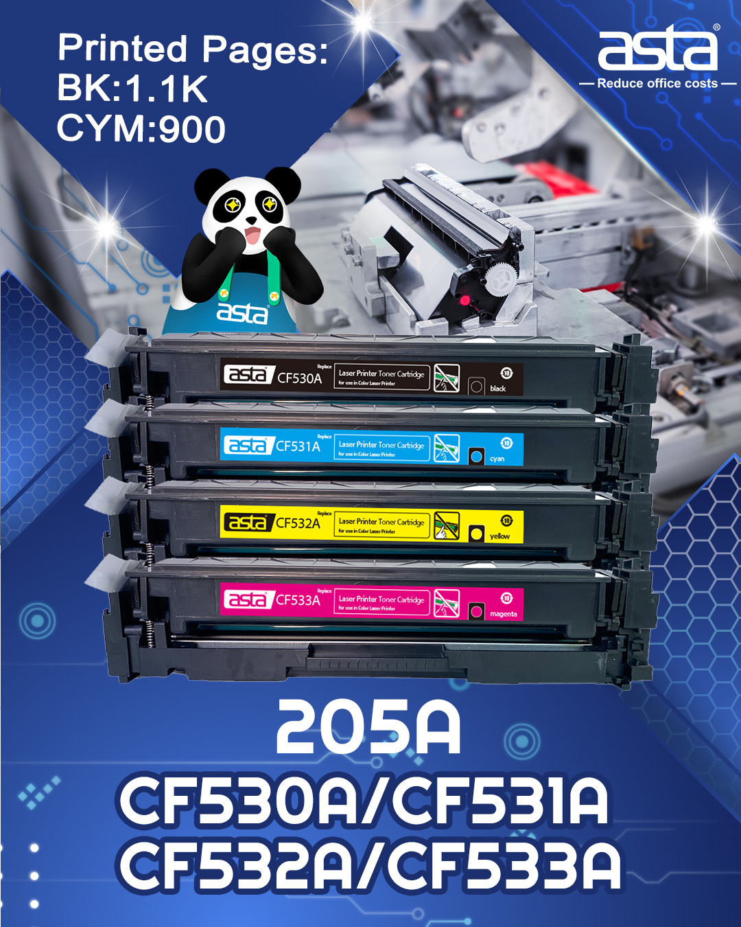 ASTA 205A series (CF530A/CF531A/CF532A/CF533A) color toner cartridges are engineered for business users who can’t compromise on quality.