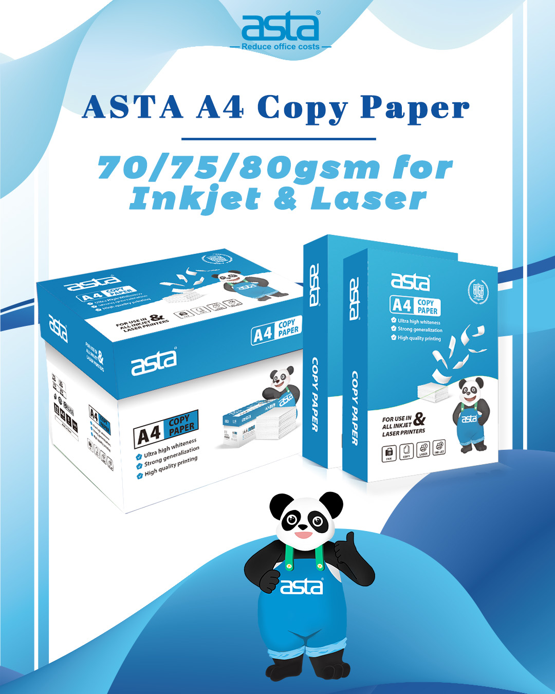 For offices, schools, and resellers, paper consistency matters in daily printing. ASTA A4 copy paper is offered in 70/75/80gsm options to support common inkjet and laser printing needs with stable performance for bulk supply and distribution.