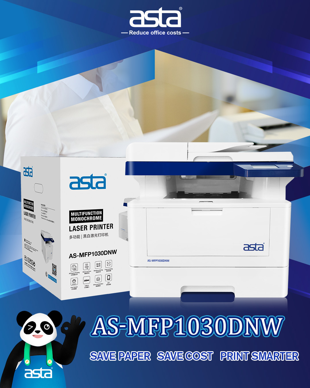 Office printing shouldn’t waste time—or paper. The ASTA AS-MFP1030DNW is a multifunction monochrome laser printer designed around one simple promise: Save paper, save cost, print smarter. For teams that print every day, smarter printing decisions add up quickly—less waste, smoother workflows, and more predictable operating costs.