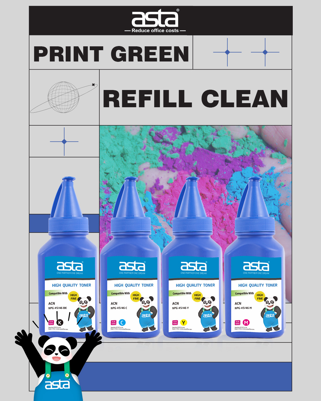 ASTA’s high-quality toner delivers crisp printing results while supporting a cleaner, greener future.