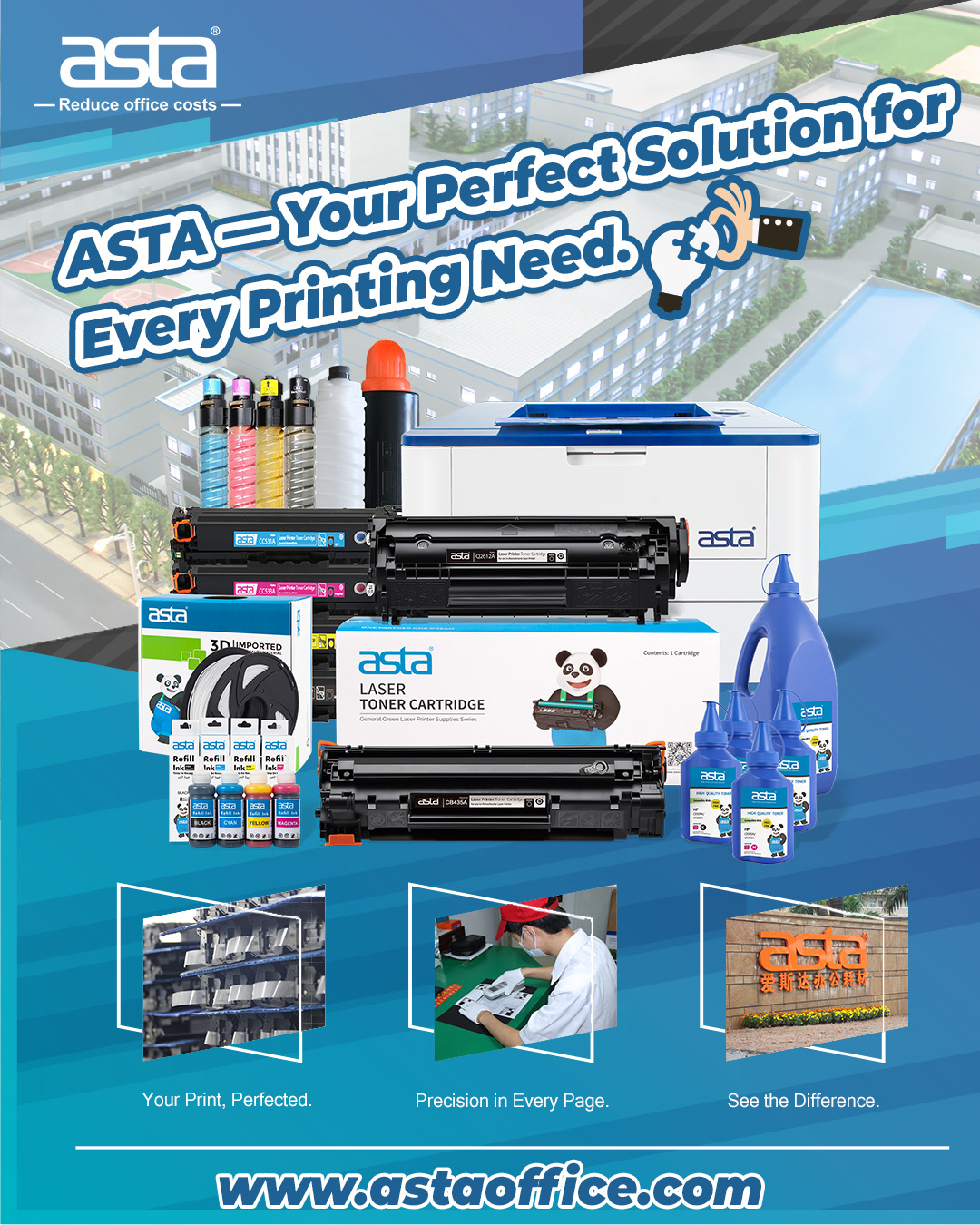 ASTA provides a complete one-stop printing supply solution—from toner cartridges and refill ink to 3D printing filaments and office materials.