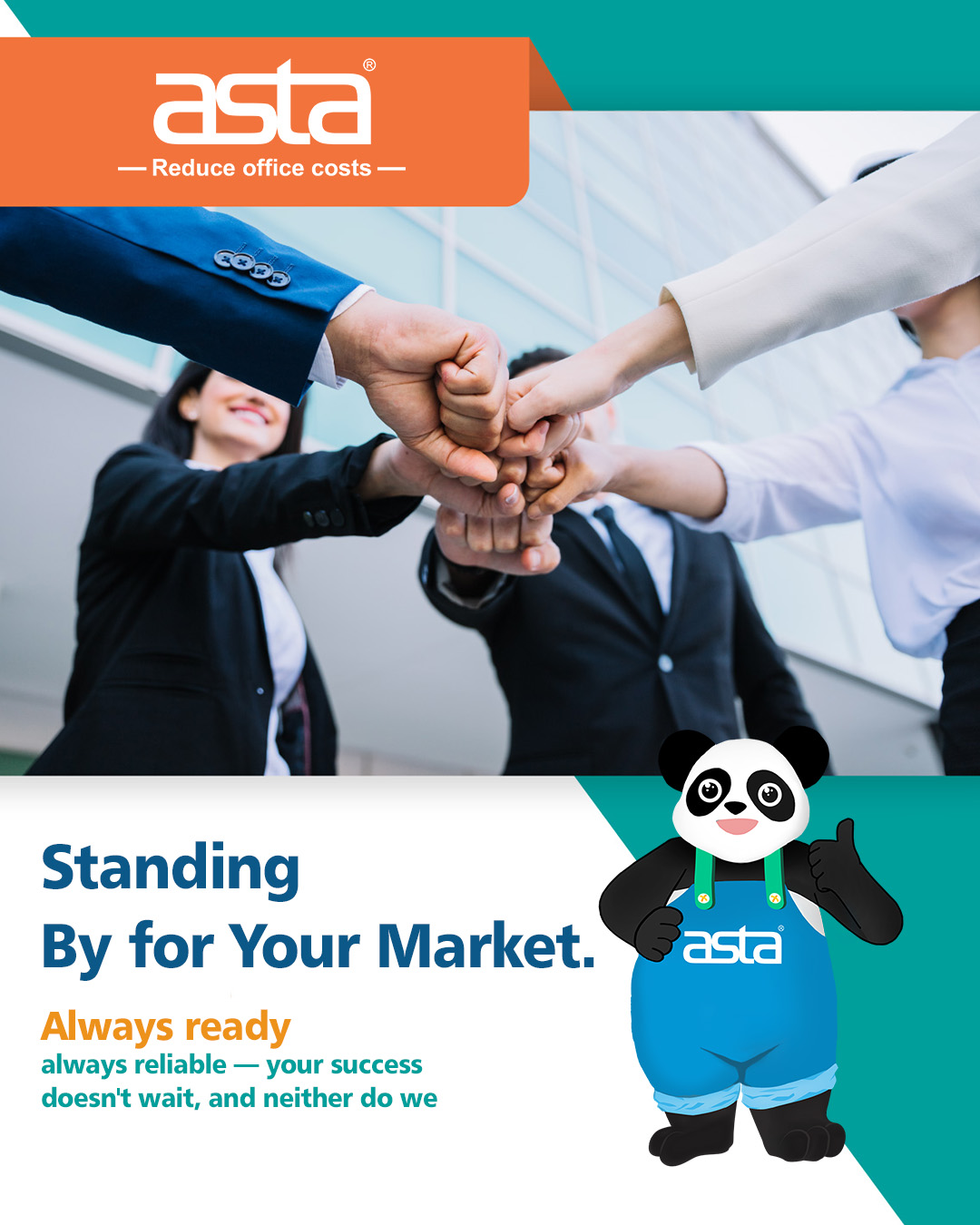 Markets move fast. Your customers don’t wait—and neither do you. That’s why ASTA positions itself as a brand built on one promise: standing by for your market, with an always ready, always reliable cooperation mindset.